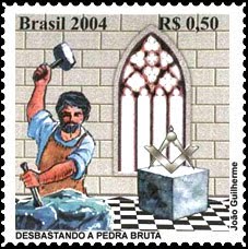 DESBASTANDO A PEDRA BRUTA: Representa o Emblema do Aprendiz, ao qual cabe a obrigação de desvencilhar-se dos defeitos e das paixões, para poder trabalhar na construção moral da humanidade, que é a verdadeira obra da maçonaria.