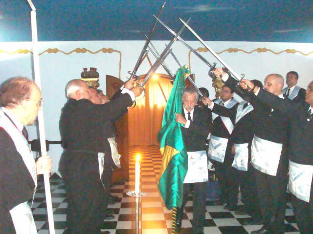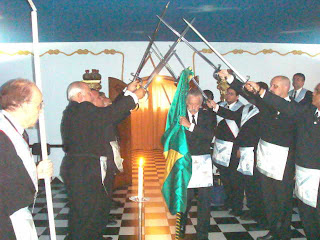 É o nome da formação de espadas manejadas pelos maçons que ocupam a Câmara do Meio, isto é as duas primeiras fileiras de assentos, a sua Espada, erguendo-a sobre a cabeça do irmão que lhe está à frente, cruzando com sua espada, pelas pontas, formando assim, um “túnel”, sob o qual, adentram ao Templo as Dignidades. Essa Abóbada, momentaneamente, substitui a Abóboda Celeste, simbolizando a proteção forte e rija que a Maçonaria dá às suas Autoridades, isolando-as com uma “cortina” de aço de todas as influências negativas que podem vir do Firmamento, como os raios cósmicos, as tempestades, o granizo, enfim, os acidentes atmosféricos, bem como as vibrações negativas. O costume de formar-se a Abóbada de Aço vem da Idade Cavalheiresca, quando os Cavaleiros armados com suas Espadas, nas cerimônias sociais, como os casamentos, a formavam como sinal de respeito e honraria. O maçom que adentra no Templo, sob a Abóbada de Aço, recebe vibrações tão intensas, que se fortalece e obtém proteção por muito tempo. Há Lojas que durante a formação da Cadeia de União, antes de tudo, retiram as Espadas de suas bainhas, juntando-as pelas pontas ao centro do circulo, atraindo assim, através da força do aço, toda energia misteriosa, como se fora um imã a recolher as influências cósmicas. A Abóbada de Aço é formada, exclusivamente, para a entrada no Templo e não para a retirada. 1º - Cerimonial usado quando se tributam honra a um Irmão Maçom, a visitantes e autoridades. 2º - Consiste em cruzar as pontas das espadas, formando os irmãos que as seguram duas ou quatro fileiras para que passem por baixo as pessoas a quem é dispensada esta honra maçônica, enquanto batem os malhetes. 3º - Trata-se de uma particularidade do REAA, Segundo Alec Mellor: "Este uso não é de origem maçônica". Foi introduzido no século XVIII à imitação do cerimonial de certas Ordens de cavalaria nobres. 4º - As Grandes constituições escocesas de 1763, de Frederico II, já citam a formação de abóbada de aço. A formação da Abóbada de Aço destina-se a dar mais galhardia ao evento que está acontecendo na Loja. O número e a posição das espadas têm um significado todo próprio, que envolve numerologia e detalhes dos labores maçônicos. Há pequenas diferenças entre as Potências, devido à formação administrativa que as mesmas trabalharam. TEORICAMENTE ela deverá ser formada apenas por Mestres, já que a espada é um assessório do M.’.M.’., mas a realidade mostra que são poucas as Lojas que possuem em seu Quadro, Mestres Maçons suficientes para estarem ocupando todos os cargos e sobrarem 13 para comporem a Abóbada. Alguns detalhes são muito importantes: - Na entrada a ponta das espadas estarão voltadas para cima, sem se tocarem e com espaço suficiente para passar as pessoas e a Bandeira Nacional. - O Guarda do Templo não participa da formação da Abóbada de Aço (na medida do possível). - Na saída a ponta das espadas estarão voltadas para baixo, sem tocarem o solo. - O uso das luvas dá mais “Pompa e Circunstância”, mas é deselegante uns usarem e outros não. - Não usamos o tinir de espadas, quando da passagem das pessoas ou da Bandeira Nacional. A grande duvida está na quantidade de espadas e suas posições nas Colunas, conforme as autoridades que serão homenageadas pela formação. Como dificilmente à formamos, é mais fácil ter escrito em um papel do que memorizado. Então imprimam e guardem. 03 ESPADAS – 01 na Coluna do Sul e 02 na Coluna do Norte - Past-Veneráveis Mestres - Vigilantes das Lojas Visitantes - Vigilantes da Loja; 05 ESPADAS – 02 na Coluna do Sul e 03 na Coluna do Norte - Venerável Mestre - Grande Oficiais - Grandes Dignidades - Delegados Regionais e Adjuntos - Membros da Comissão de Legislação - Membros da Comissão de Justiça - Membros da Comissão Superior de Recursos - Membros das Administrações da Ordem D’Molay e Filhas de Jó - - Autoridades dos Poderes Executivo, Legislativo e Judiciário do mundo Profano; 07 ESPADAS – 03 na Coluna do Sul e 04 na Coluna do Norte - Delegado Geral da Ordem - Presidente da Comissão de Justiça - Presidente da Comissão de Legislação - Presidente da Comissão Superior de Recursos - Ex-Grandes Vigilante - Membros da Administração do Supremo Conselho do Grau 33 do R.’.E.’.A.’.A.’. para a República Federativa do Brasil - - Prefeito Municipal; 09 Espadas – 04 na Coluna do Sul e 05 na Coluna do Norte - Grandes Vigilantes - Grão-Mestres Ad-Vitam - - Governador do Estado ** Ministros do Executivo Federal, Membros dos Tribunais Superiores, Presidentes das Casas Legislativas; 11 Espadas – 05 na Coluna do Sul e 06 na Coluna do Norte - Grão-Mestre - Soberano Grande Comendador do Grau 33, do R.’.E.’.A.’.A.’. para a República Federativa do Brasil - - Presidente da República; 13 Espadas – 06 na Coluna do Sul e 07 na Coluna do Norte - Bandeira Nacional. Observação muito importante que consta no livro de Normas e Procedimentos Ritualísticos da GLMMG: “As autoridades profanas citadas (conforme descrito acima), que forem Maçons, só receberão as Saudações Honoríficas quando em missão oficial e no exercício de suas funções”.